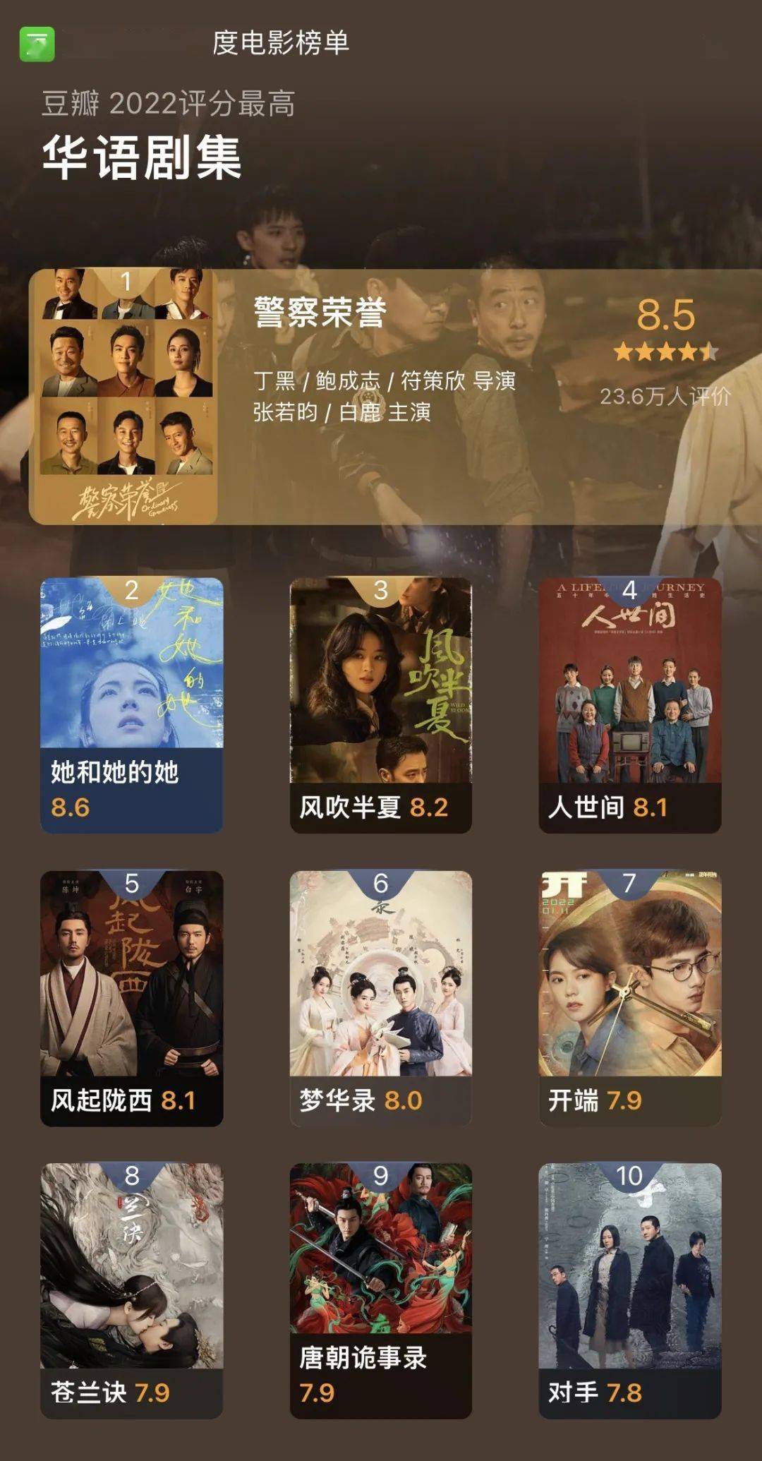 2022评分最高的国产电视剧有哪些?2022豆瓣高分华语剧集十大排行榜