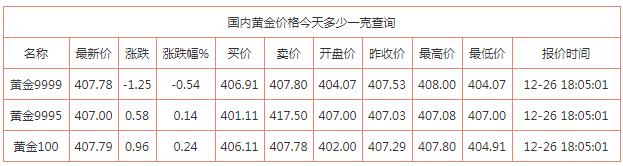 国内黄金价格今天多少一克?各品牌金店黄金价格多少钱一克12月26日