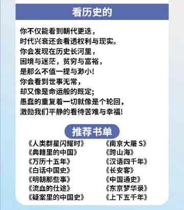 看历史的,你不仅能看到朝代更迭,时代兴衰还会看透权利与现实。你会发现在历史长河里,困境与迷茫,贫穷与富裕,是那么不值一提与渺小!你会看到世事无常,却又像是命运般的既定;愚蠢的重复着一切就像是个轮回,激勋我们平静的看待苦难与幸福!