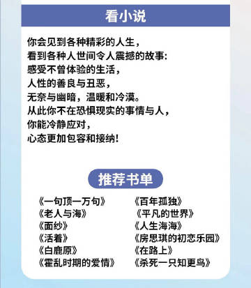看小说,你会见到各种精彩的人生,看到各种人世间令人震撼的故事:感受不曾体验的生活,人性的善良与丑恶,.无奈与幽暗,温暖和冷漠。从此你不在恐惧现实的事情与人,你能冷静应对,心态更加包容和接纳!