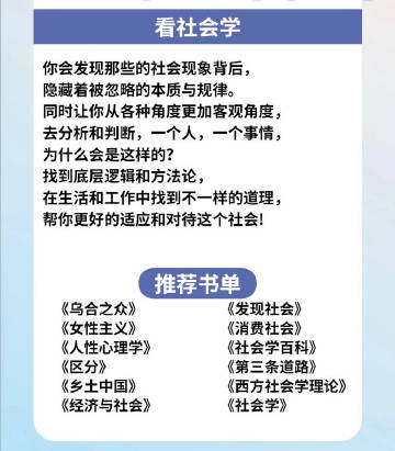 看社会学,你会发现那些的社会现象背后,隐藏着被忽略的本质与规律。同时让你从各种角度更加客观角度,去分析和判断,一个人,一个事情,为什么会是这样的?找到底层逻辑和方法论,在生活和工作中找到不一样的道理,帮你更好的适应和对待这个社会!