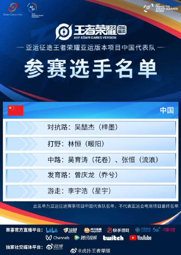 王者荣耀亚运版本的亚运征途参赛选手在今天宣布啦!北京WB的选手将会全员出战亚运征途赛事~