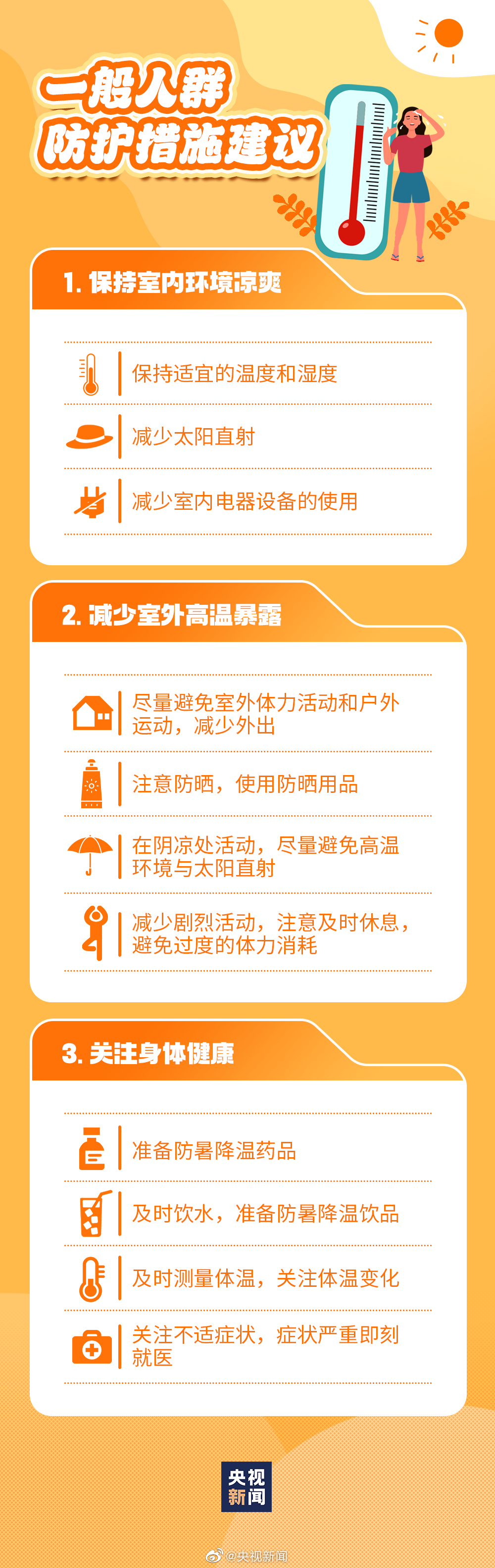 仲夏时节,高温热浪可直接引起热晕厥、热痉挛、热衰竭等疾病,还可引发认知障碍、焦虑、抑郁等系列精神疾患。不同人群应该如何预防?收好高温热浪防护指南↓↓转给你关心的TA!