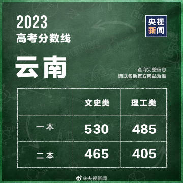 ①一本:文史类530分、理工类485分;②二本:文史类465分、理工类405分。