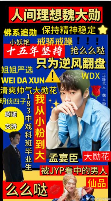 魏大勋粉丝做的应援图主打一个闪亮,老来得粉是这样的,毕竟老粉都经历过那么一个时代。