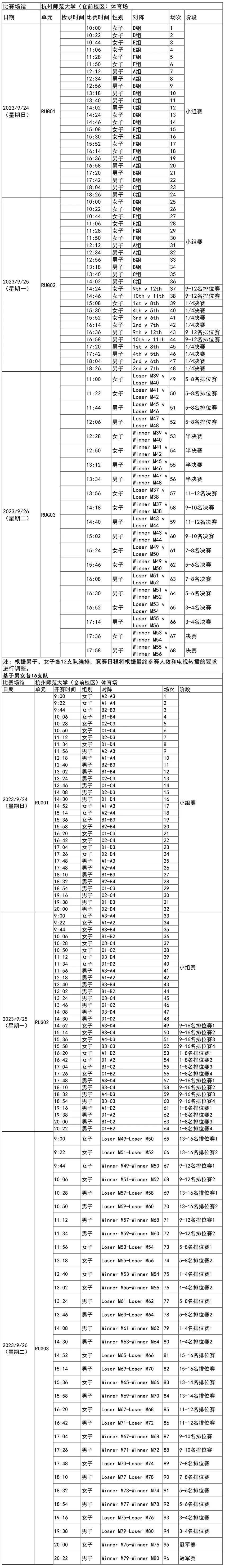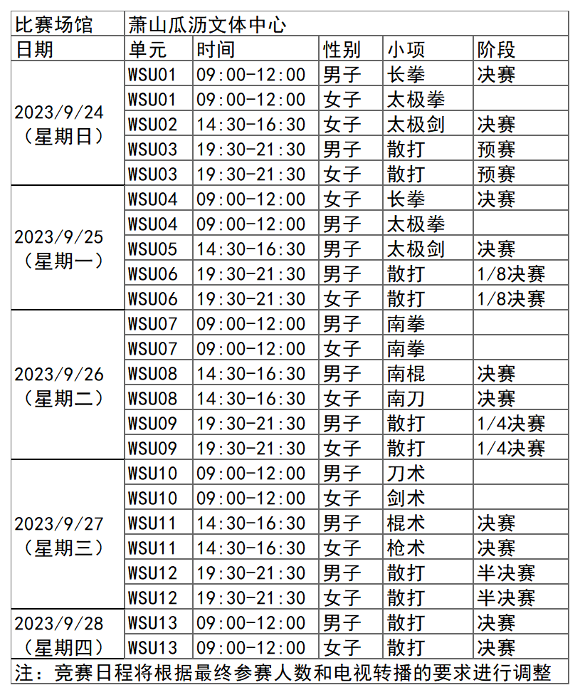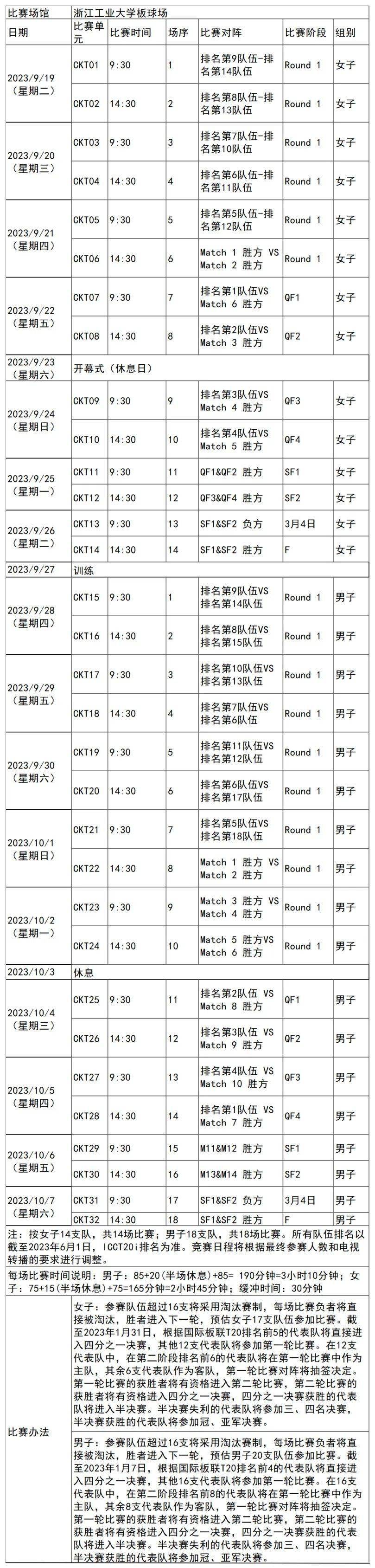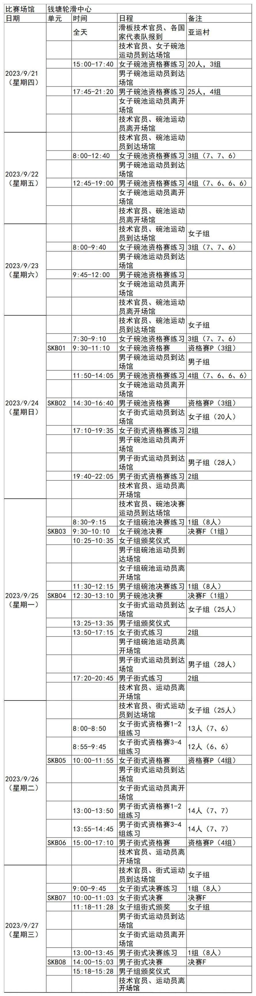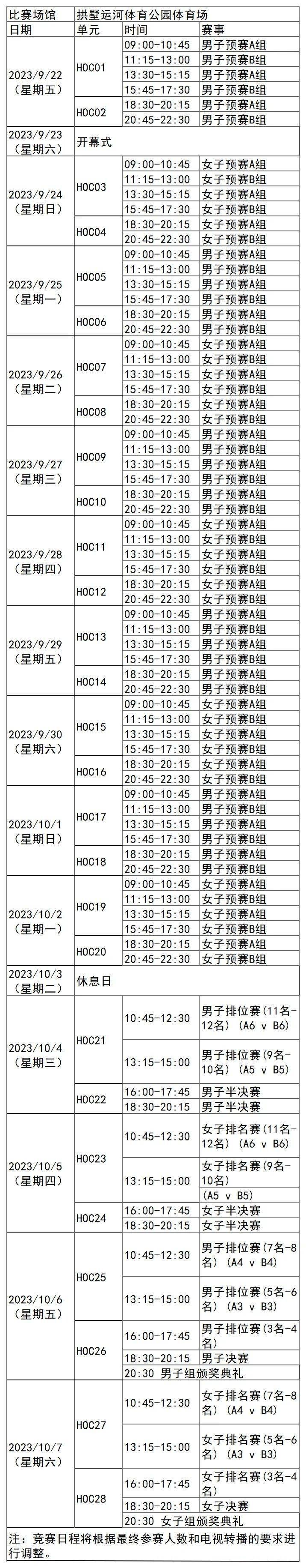 日前,杭州亚运会官方网站陆续更新了一批比赛项目详细赛程。