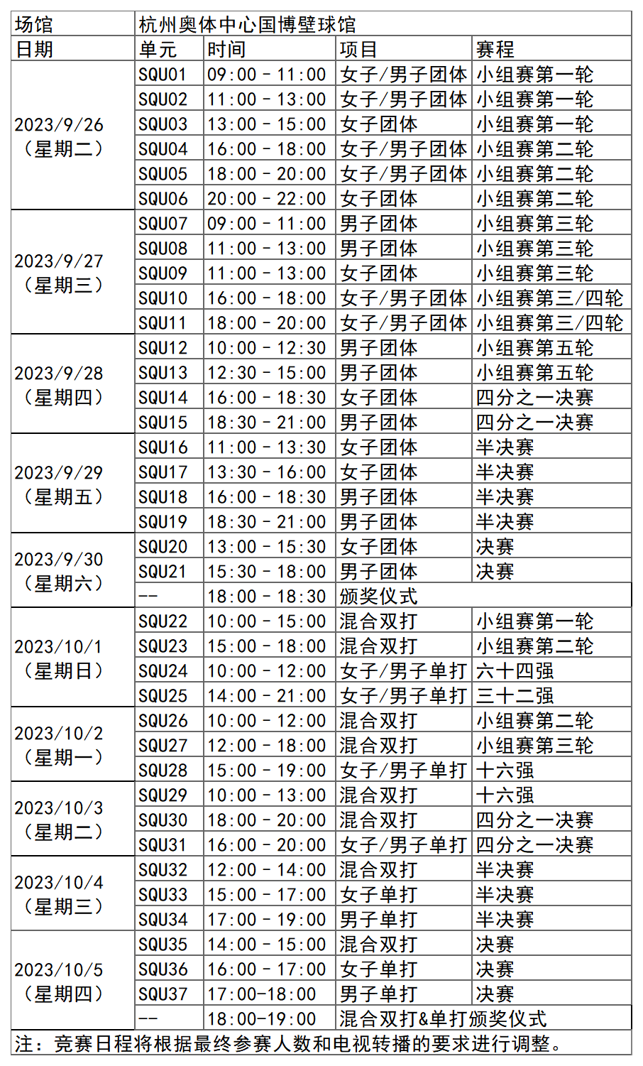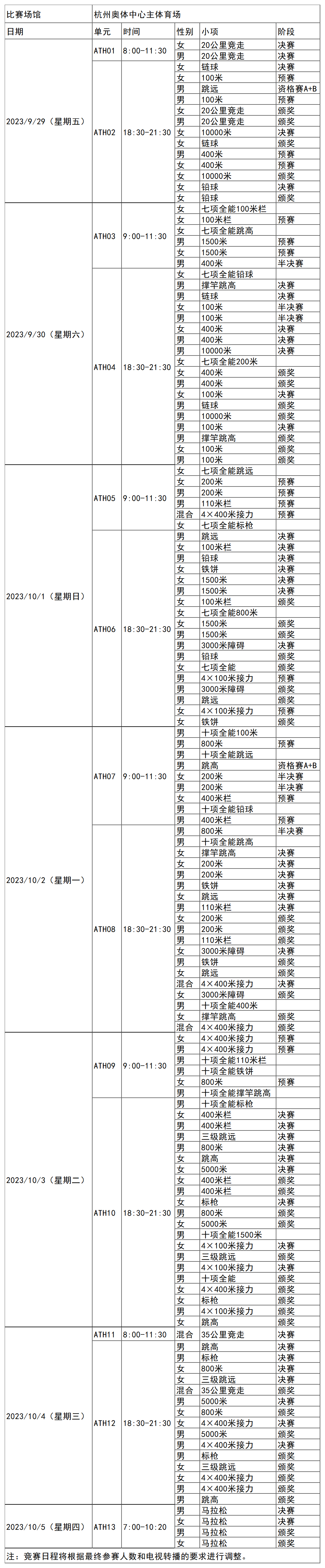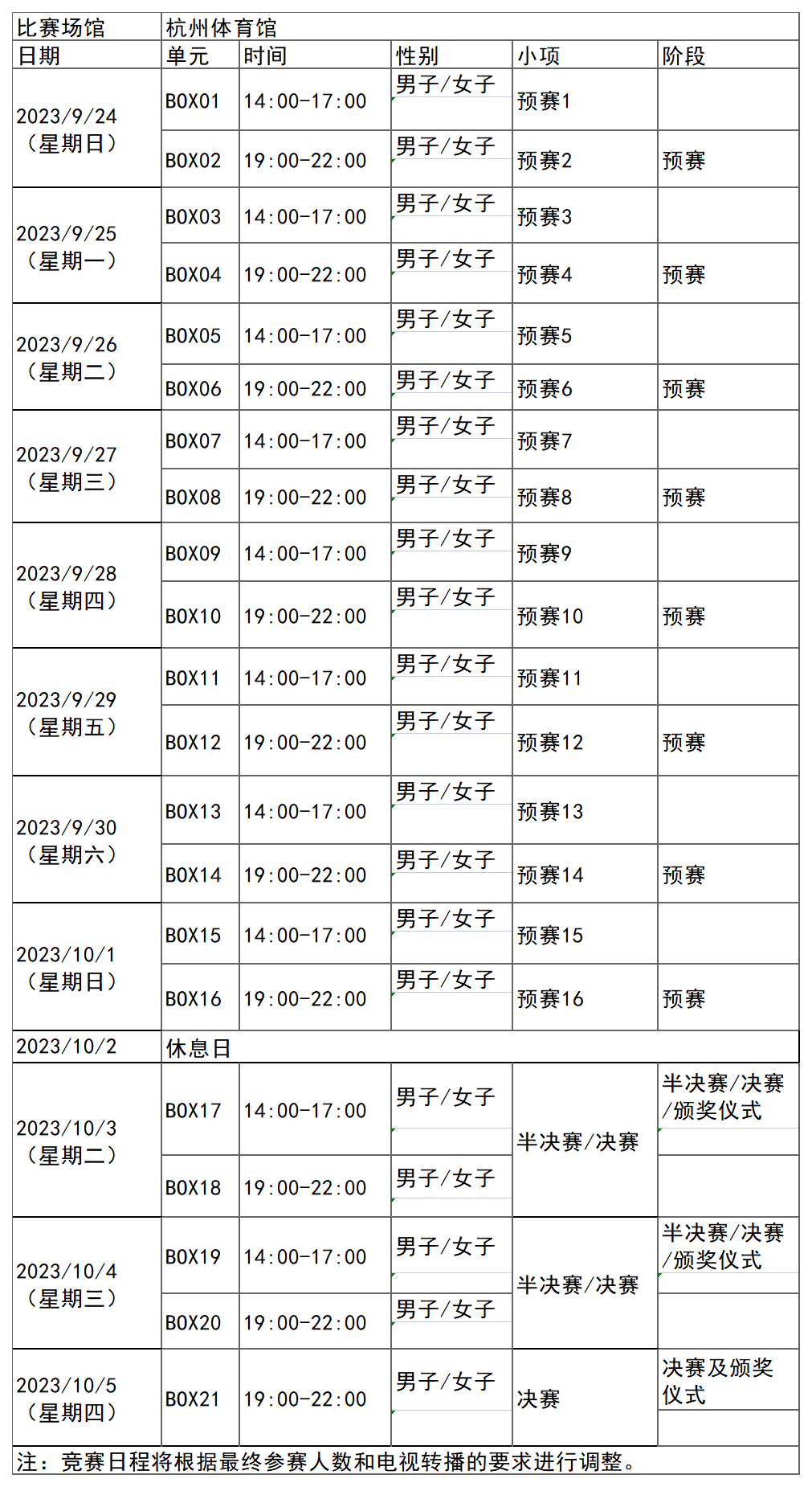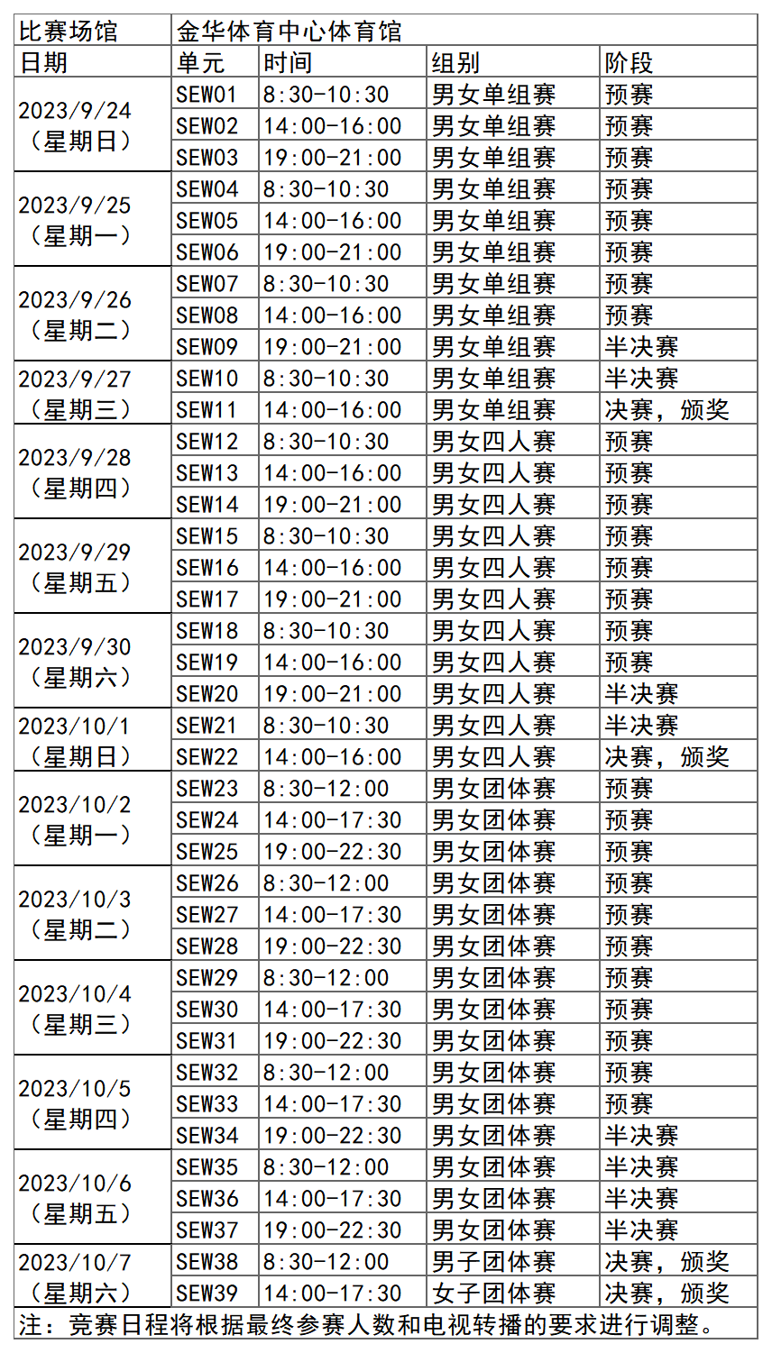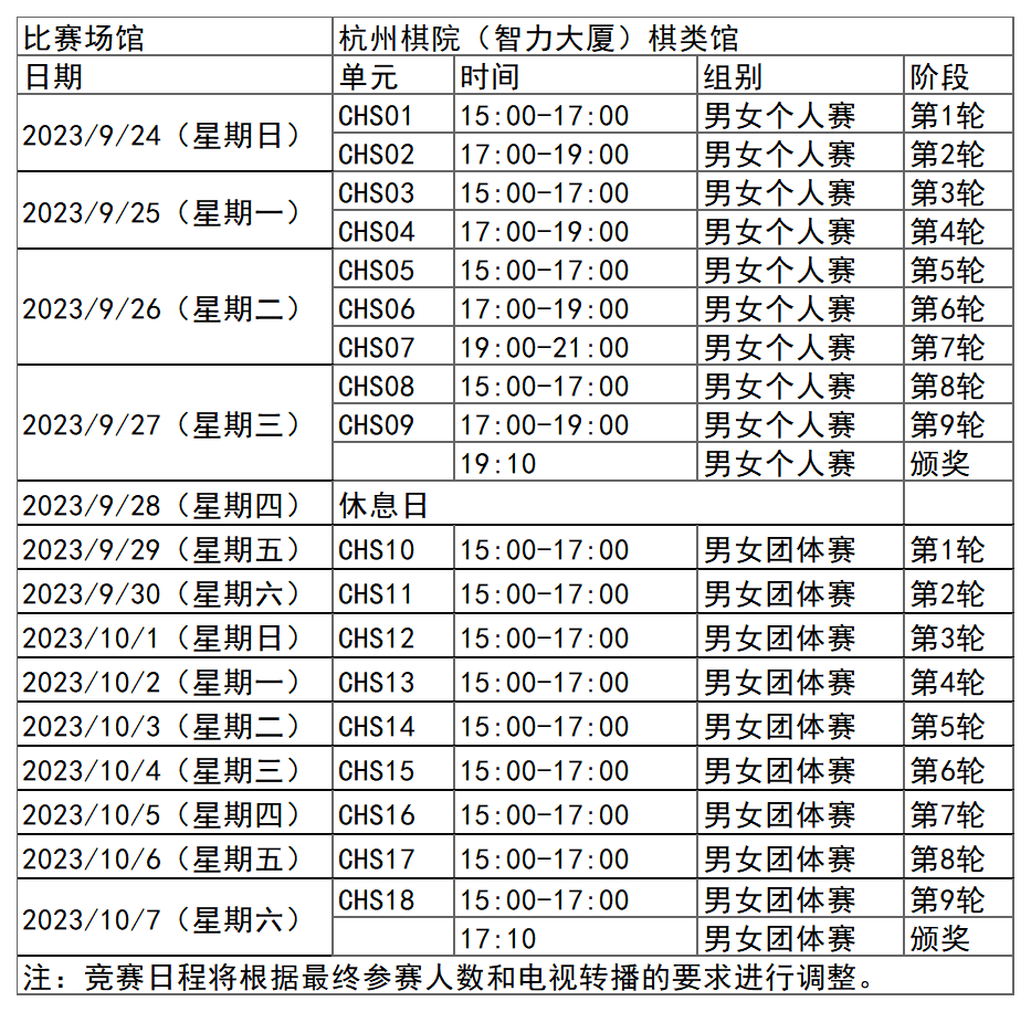 日前,杭州亚运会官方网站陆续更新了一批比赛项目详细赛程。