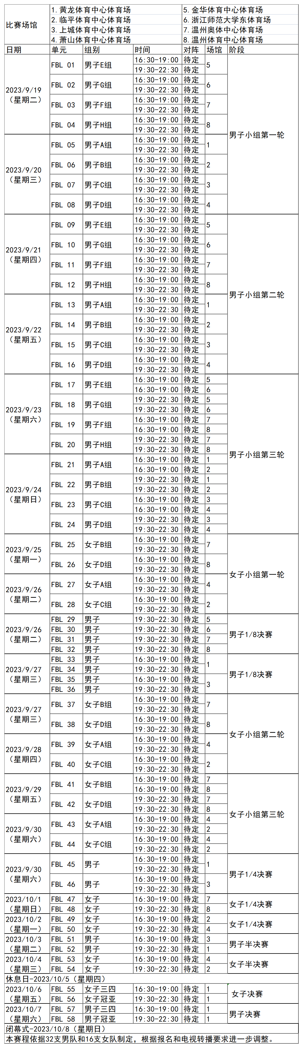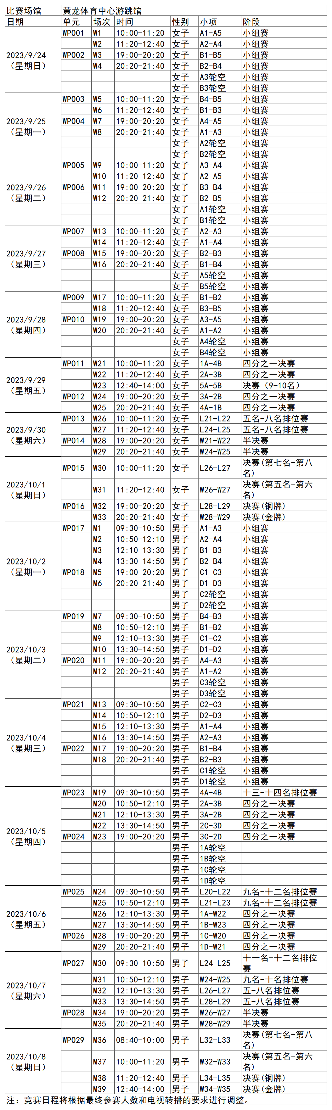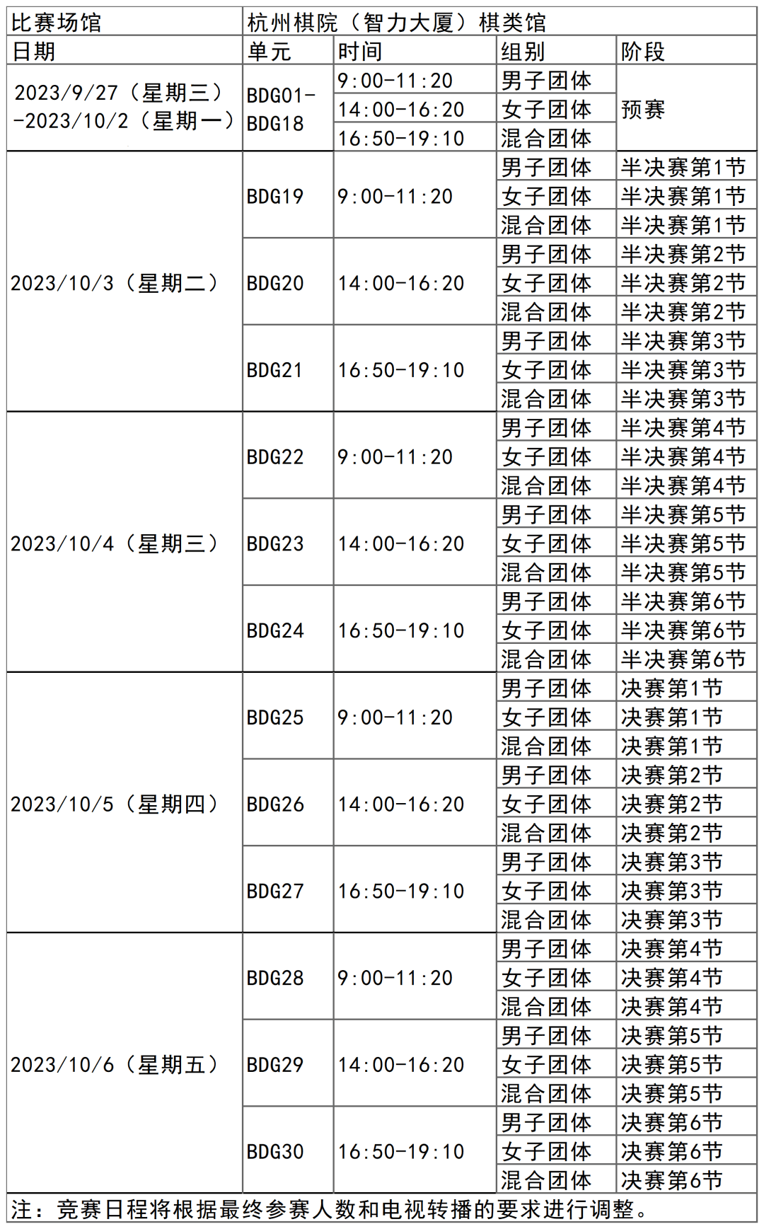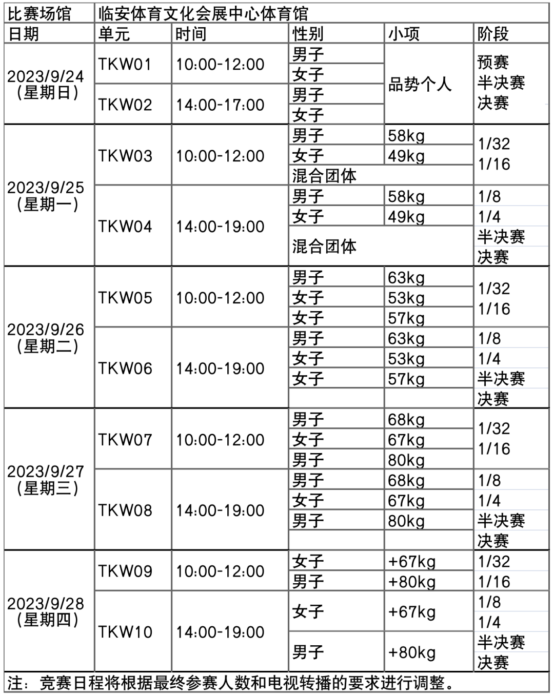 日前,杭州亚运会官方网站陆续更新了一批比赛项目详细赛程。