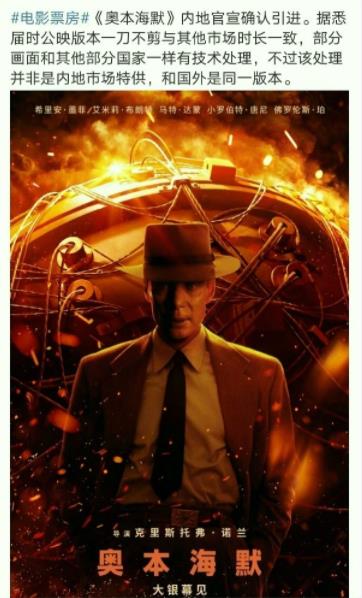 据悉,《奥本海默》国内版将不会对剧情做出任何删减,但会对一些R级镜头进行必要的改动。所以国内不管是删减还是局部放大,应该都是比较好处理的,真正难处理的是涉及到意识形态的对白。